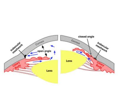 In a healthy eye, aqueous fluid flows continuously through the trabecular meshwork — a microscopic drainage channel located in the angle between the iris and the cornea. In open-angle glaucoma, this drainage angle remains “open,” but the trabecular meshwork becomes partially blocked, leading to a gradual increase in eye pressure and progressive optic nerve damage.